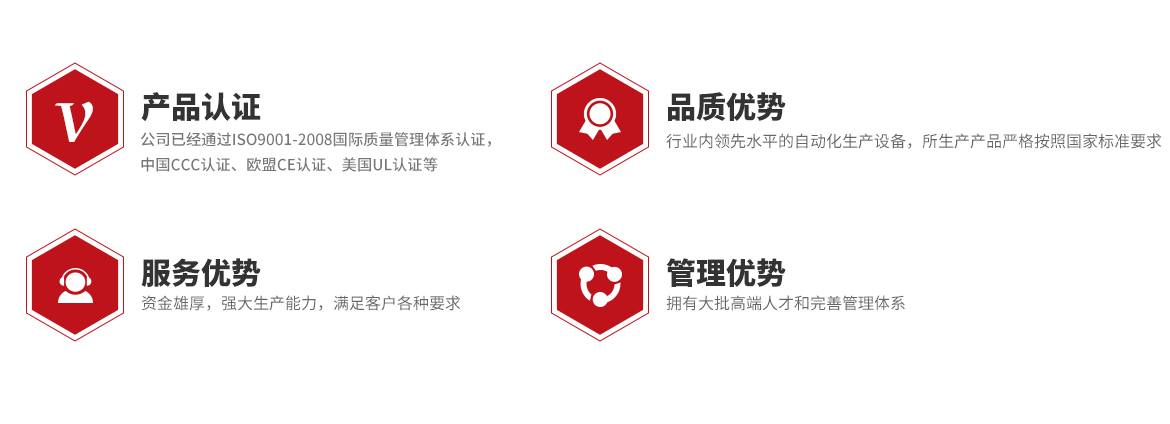 經過20多年的發展,公司積累了豐富的生產研發與技術經驗,并獲得ISO9001、ISO14001、LPCB、UL、SAA、TUV、VDE、SGS、CQC、CE、CCC、ROHS、REACH、CVC、EACC、WK、GRS等資質認證。