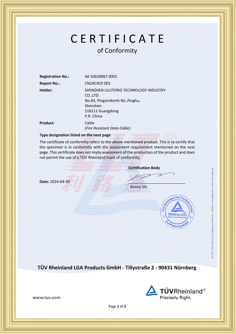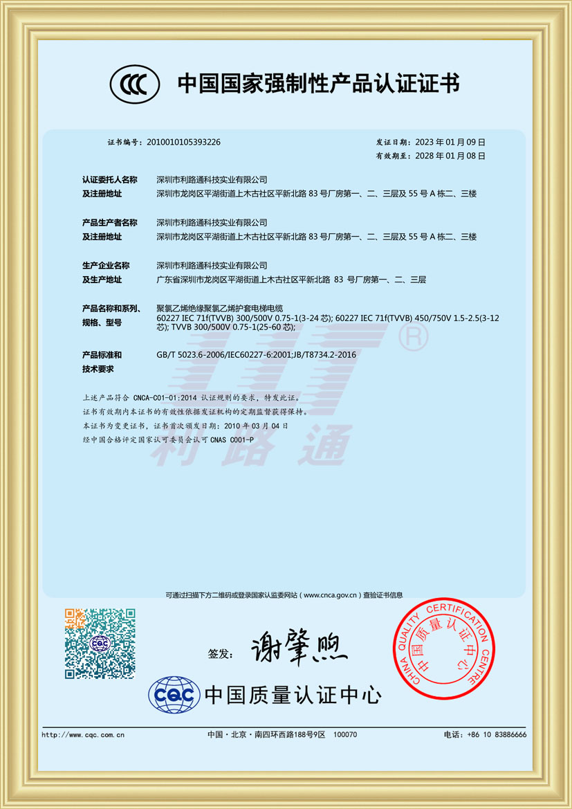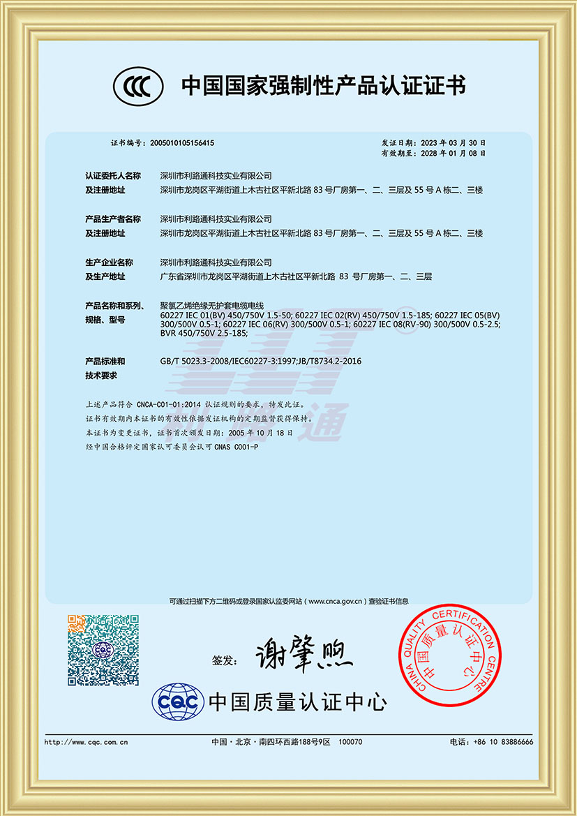 深圳市利路通科技實業有限公司成立于2001年,是一家主要從事防火線纜、硅膠線纜、橡膠線纜、低煙無鹵線纜、通訊線纜、漂浮線纜、耐寒線纜、控制線纜、柔性線纜、電梯線纜、機器人線纜、新能源專用線纜、光纖綜合線等全系列電線電纜的產品設計、研發、生產、銷售、工程方案銷售服務的綜合性企業,產品廣泛應用于消防與安防,通訊,新能源,太陽能,高層樓宇,軌道交通,橋梁,工業4.0設備,船舶,航空,軍工等領域并榮獲深圳高新技術企業、全國守合同重信用企業、深圳市愛心企業、深圳市消防安防百強企業、電線電纜協會理事會單位、國家一級計量體系合格企業、中國優秀民營科技企業。